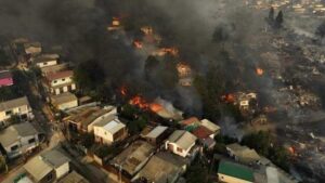 Esto se registra en la región de Valparaíso, en dos de las ciudades más golpeadas, Viña del Mar y Quilpué -ubicadas a unos 120 kilómetros de la capital Santiago-, villas enteras quedaron hecha cenizas.