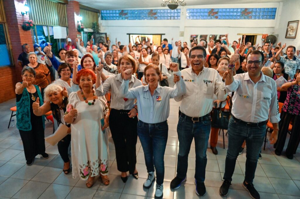 La candidata Angélica Moya se reunió con estructuras de activistas, promotores y comités seccionales que trabajan desde el inicio de la campaña para impulsar al candidato a diputado local por el distrito 30, Enrique Jacob Rocha, y en general a los abanderados de la coalición Fuerza y Corazón por México, quienes el próximo domingo defenderán el voto como representantes de casilla.