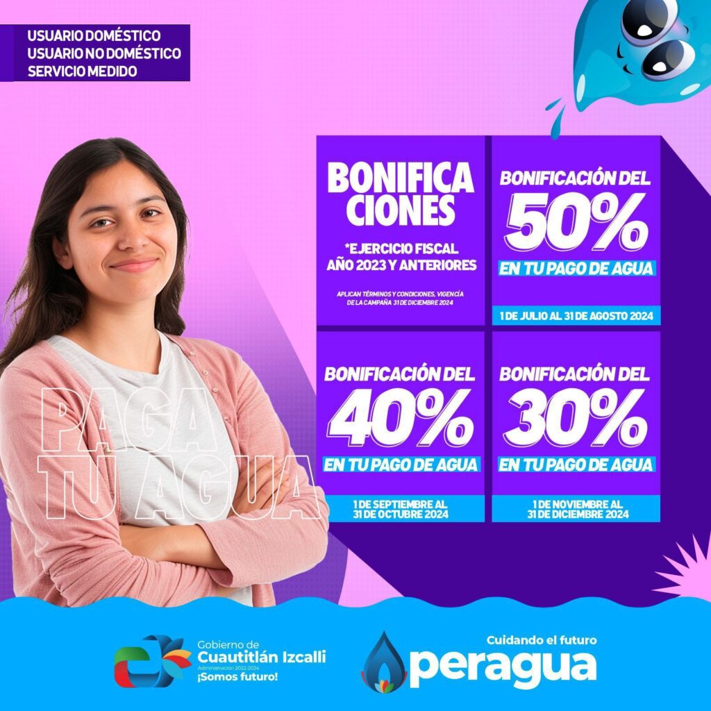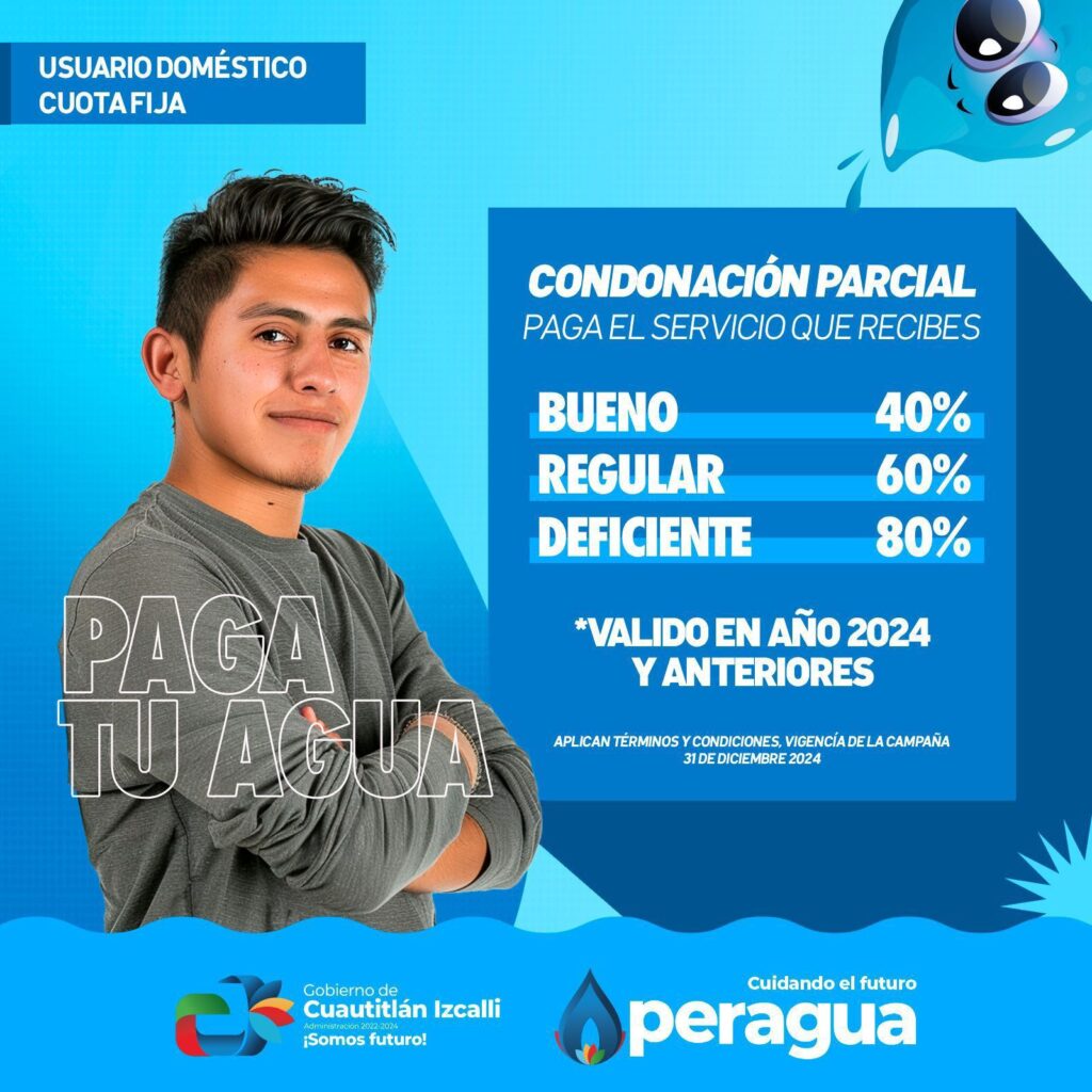 El Ayuntamiento de Cuautitlán Izcalli, a través del Organismo Público Descentralizado Municipal para la Prestación de los Servicios de Agua Potable, Alcantarillado y Saneamiento (OPERAGUA) Izcalli, mantiene el “Programa de Regularización Fiscal 2024” en apoyo a la economía de las familias izcallenses.