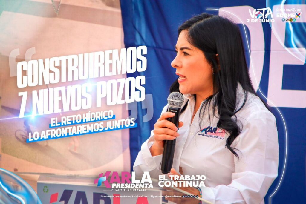 CUAUTITLÁN IZCALLI.- Karla Fiesco García, candidata a la presidencia municipal de Cuautitlán Izcalli por la coalición Fuerza y Corazón por EDOMÉX, presentó sus propuestas en materia de seguridad y agua. Estos dos temas fueron prioritarios en su administración y hoy quiere continuar con los trabajos que dieron como resultados la baja en los índices de inseguridad, así como enfrentar con acciones viables el reto hídrico que enfrenta el municipio mexiquense y el país entero.