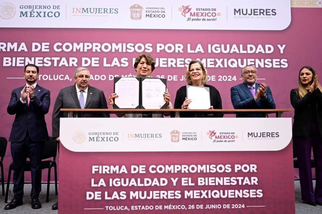 En un hecho histórico, la Gobernadora del Estado de México, Delfina Gómez Álvarez firmó con el Instituto Nacional de las Mujeres (Inmujeres) una serie de compromisos a favor de la igualdad y el bienestar de las mujeres mexiquenses, reafirmando su disposición para generar condiciones que les permitan vivir en entornos libres de violencia.