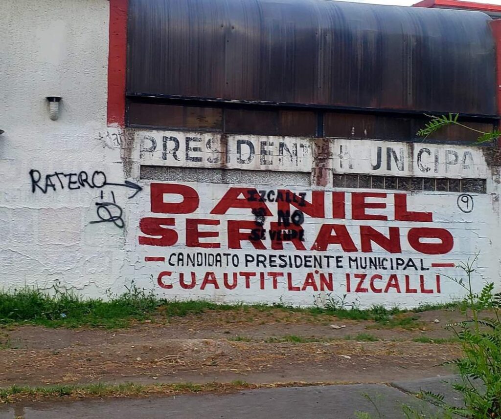 Las muestras de rechazo contra el candidato de Morena a la alcaldía de Izcalli, Daniel Serrano, se han manifestado en las calles; en algunas avenidas, han pintado mensajes calificándolo de corrupto.