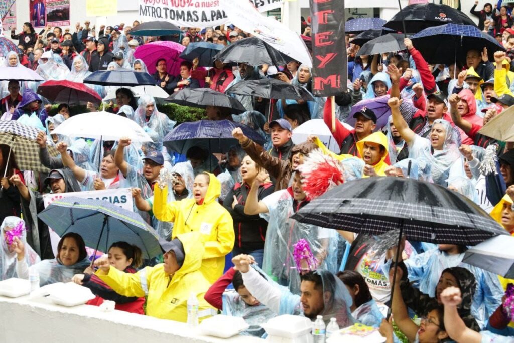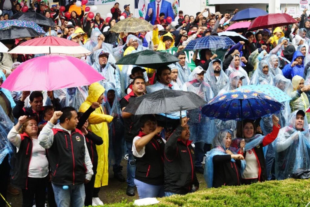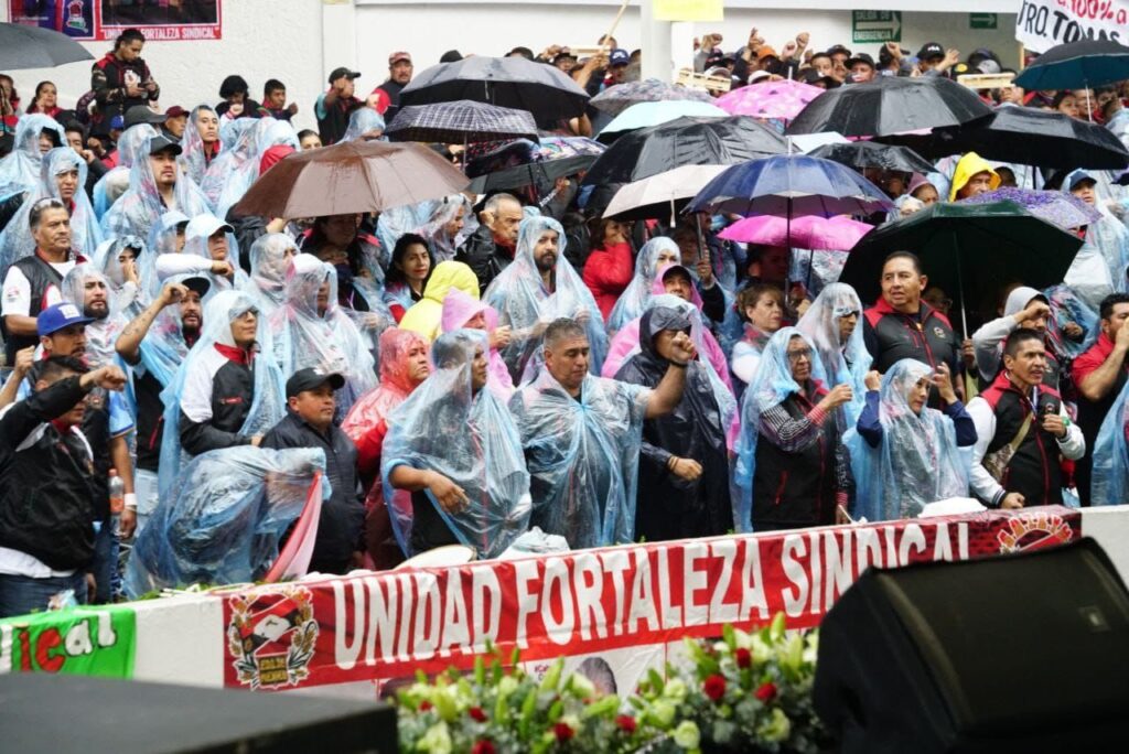Acotó ante la base trabajadora que se dio cita, y entre la lluvia que su historia es estoica porque juntos han logrado vencer cada adversidad y valoró en el cierre de filas de los sindicalizados de servicios generales.