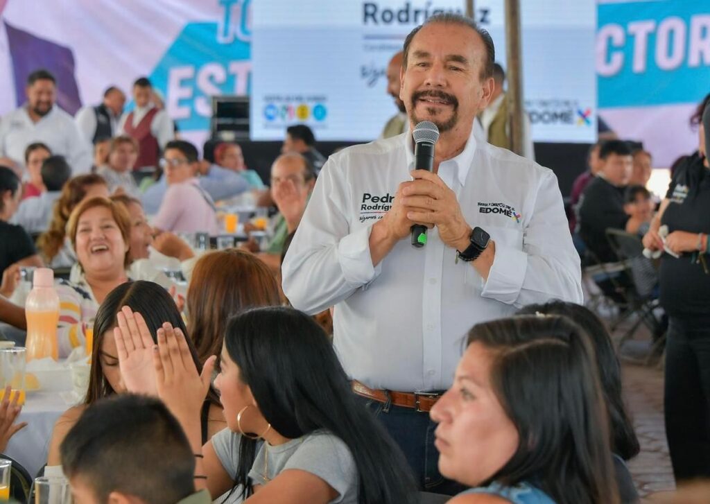 Pedro Rodríguez Villegas instó a su “ejército electoral” a defender el proyecto de gobierno que propone con más apoyos sociales, más obra pública y mayor seguridad, entre otras acciones, y les agradeció todo el apoyo que ha recibido desde el inicio de su campaña.